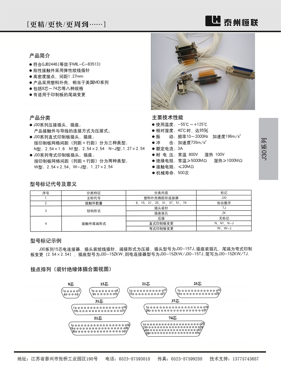 J30J系列微型矩形電連接器